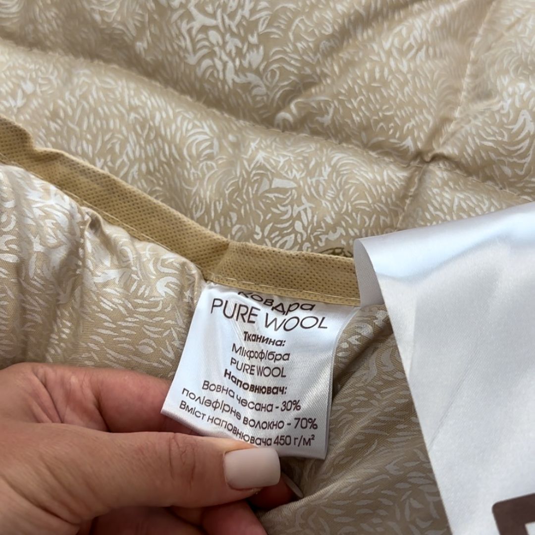 - Наповнювач: вовна чесана 30, поліефірне волокно 70%;