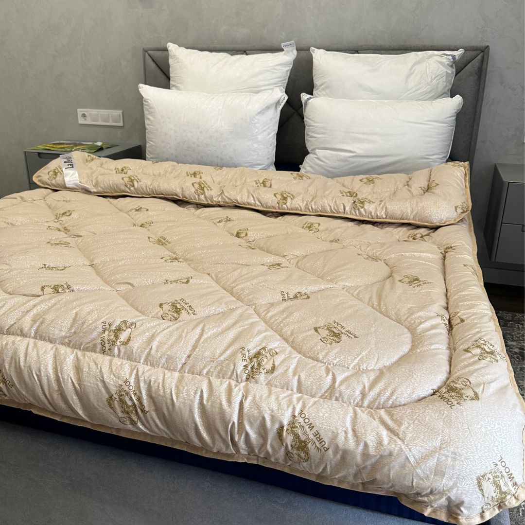 Ковдра з овечої вовни виготовляється на європейському обладнанні під контролем якості. Ця екологічно чиста шерсть є гігроскопічною, еластичною та стійкою до зминання.